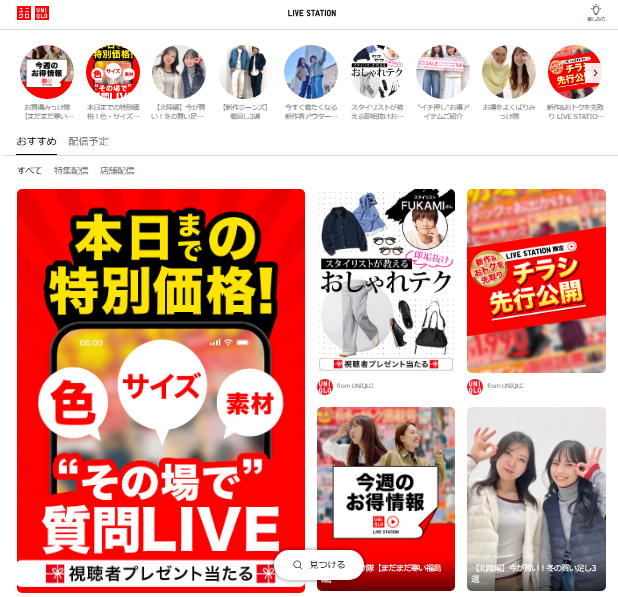 UNIQLOは、独自のライブコマースプラットフォーム「UNIQLO LIVE STATION」を長期的に運用し、ブランド体験の深化と双方向コミュニケーションの強化を実現しています。