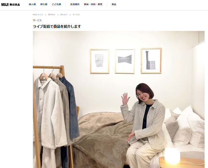 無印良品が過去に展開していたのは、スタッフが季節のおすすめ商品やコーディネートをリアルタイムで紹介するライブ配信です。配信中はチャットで質問でき、スタッフの回答を受けながら商品を理解できます。