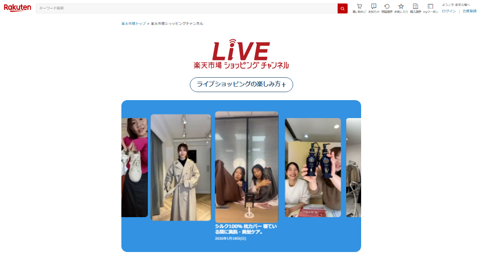 楽天市場には、出店者がリアルタイムで商品を紹介・販売できる「ライブコマース機能」があります。