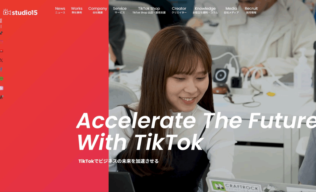 studio15株式会社は、TikTok運営元であるByteDance社と正式契約を結ぶ、数少ない日本の公式MCN(マルチチャンネルネットワーク)です。所属クリエイターは300組以上、総フォロワー数は1.4億を超え、ショート動画分野での実績と影響力を兼ね備えた事務所として注目されています。