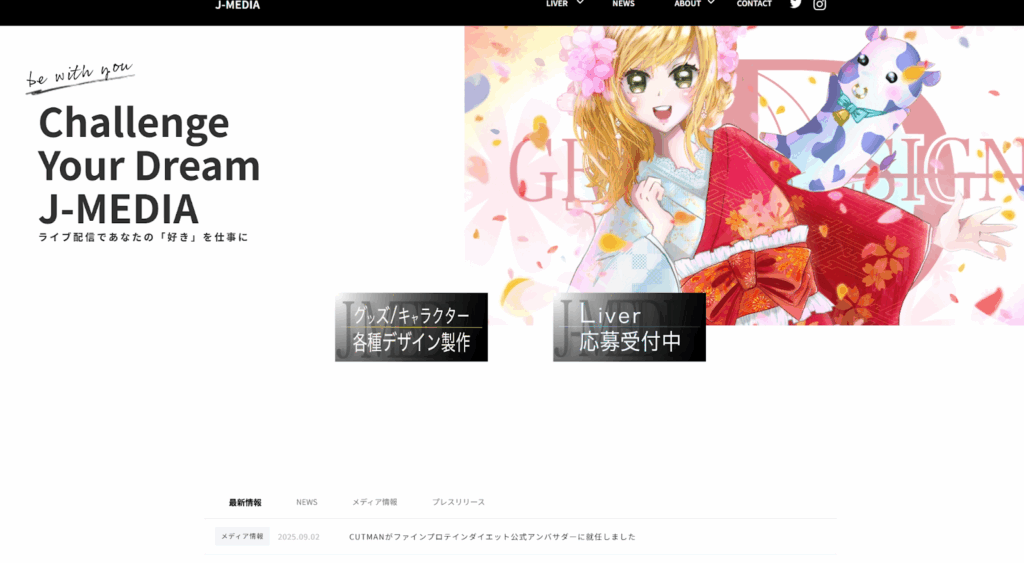 株式会社J-MEDIAは、17LIVE、TikTok LIVE、BIGO LIVE、Pococha、everylive、IRIAMなど、複数の主要ライブ配信アプリに対応したライバー事務所です。スマートフォンひとつで全国どこからでもライブ配信をスタートできる環境を整えており、多くの所属ライバーが人気配信者として活躍しています。