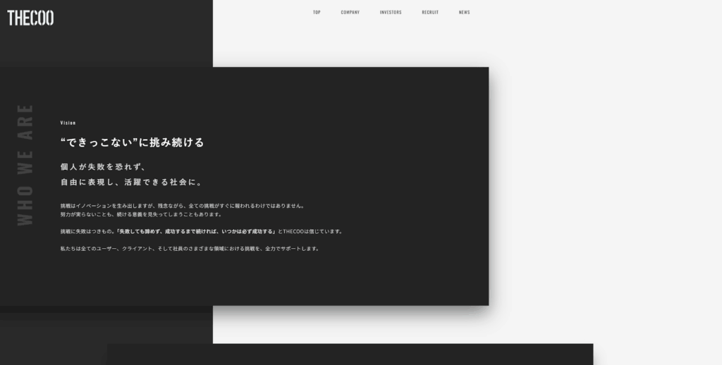 THECOO株式会社は、デジタルとコンテンツを融合させたマーケティング支援を強みとする企業です。Google出身のメンバーを中心に創業され、長年にわたり数多くの企業のデジタルプロモーションをサポートしてきました。現在では、インフルエンサーマーケティング、デジタル広告運用、SNSマーケティングを軸に、企画立案から実行、効果測定までを一気通貫で支援しています。