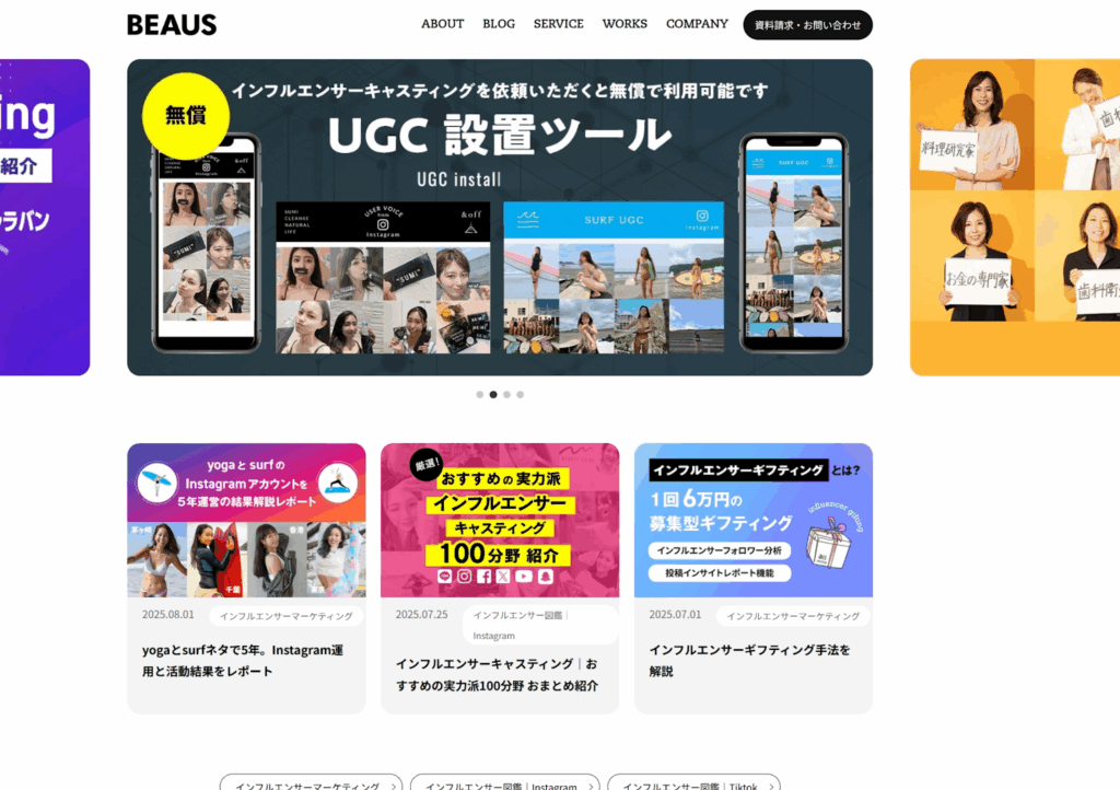 同社のインフルエンサーマーケティングを活用するメリットは、認知拡大の効率化、エンゲージメントの獲得、そして幅広い見せ方の実現にあります。すでに多くの企業がインフルエンサー施策を導入しており、特にInstagramを中心にマイクロインフルエンサーを起用した取り組みが広がっています。