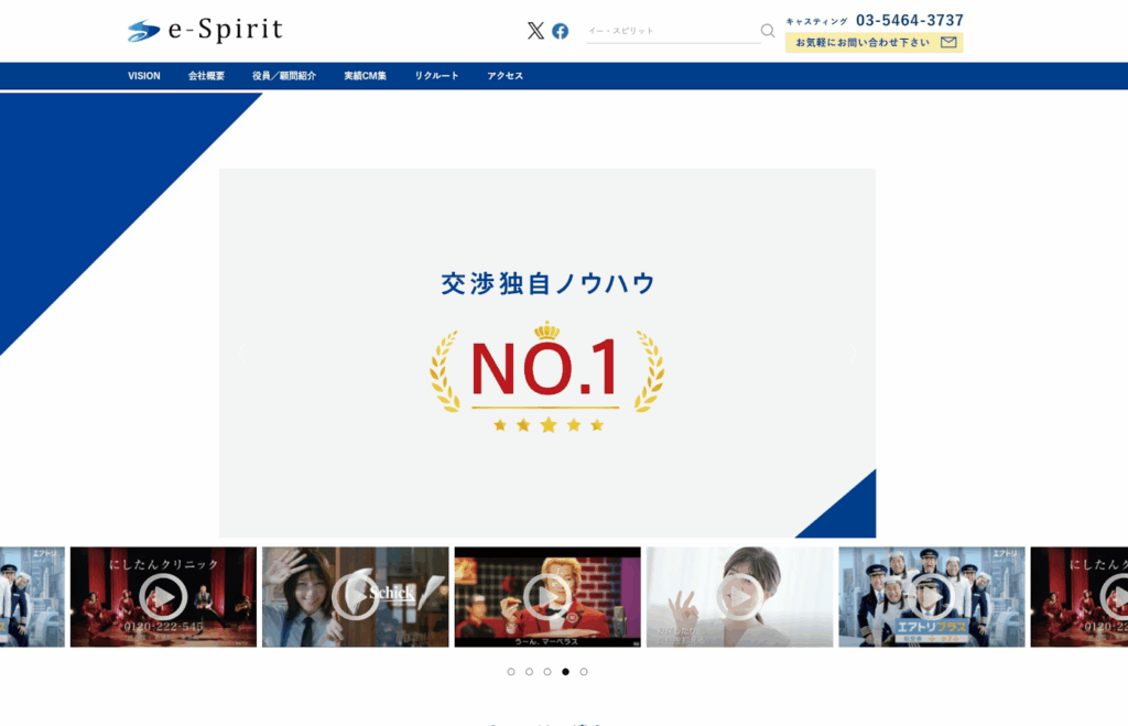 株式会社イー・スピリットは、圧倒的な実績とデータを強みに「キャスティングのベストアンサー」を提供するキャスティング専門企業です。年間2,000件超、累計30,000件以上のCMキャスティング実績を誇り、成功率95%を実現しています。経験豊富な交渉力と独自のノウハウで、企業の課題や目的に合った最適な人材をスピーディーに提案します。